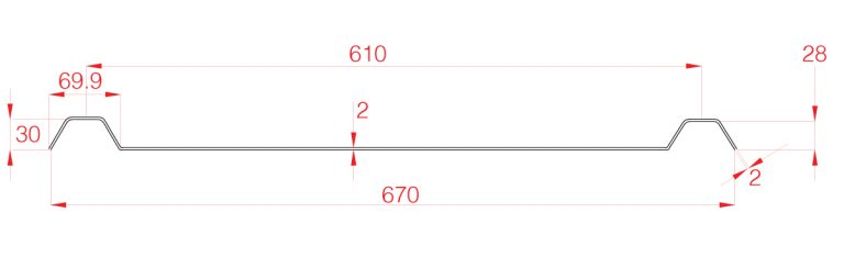 Both the overlapping ribs are spaced at 610 centres, allowing the overlapping rib to be positioned on the rafter effectively concealing the ribs when being viewed from below.